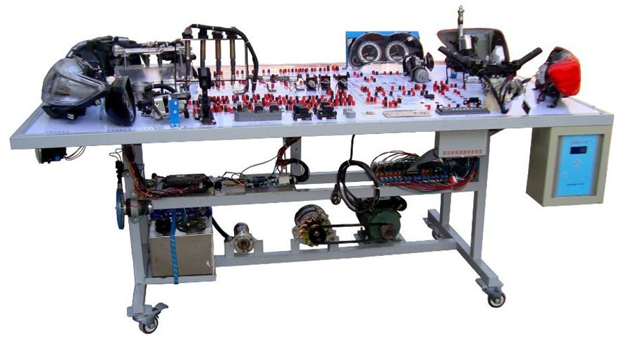 汽車電氣設(shè)備實訓(xùn)室。汽車電器設(shè)備實訓(xùn)室包含有汽車燈光系統(tǒng)、車載網(wǎng)絡(luò)系統(tǒng)、全車電器系統(tǒng)、汽車啟動系統(tǒng)、汽車空調(diào)系統(tǒng)、全車線路試驗臺、等實訓(xùn)教學(xué)設(shè)備。該實訓(xùn)室可以承擔《汽車構(gòu)造》、《汽車電器設(shè)備》、《汽車電控系統(tǒng)》、《汽車檢測與診斷》等課程的實踐教學(xué)任務(wù)。可以用于研究、分析全車電器系統(tǒng)、燈光系統(tǒng)、儀表系統(tǒng)等電器設(shè)備的電路及功能。利用這些系統(tǒng)進行實踐教學(xué),使學(xué)生熟悉汽車電器的結(jié)構(gòu)和工作原理,掌握各個系統(tǒng)的基本組成電路,掌握主要電路的檢測方法和系統(tǒng)的故障特征,從而具有一定的檢測和調(diào)校能力。