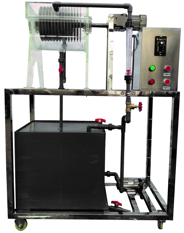 轉(zhuǎn)盤(pán)反應(yīng)器、水泵、調(diào)速電機(jī)、流量計(jì)、配水池、閥門(mén)管道、電路控制系統(tǒng)、框架及控制屏。