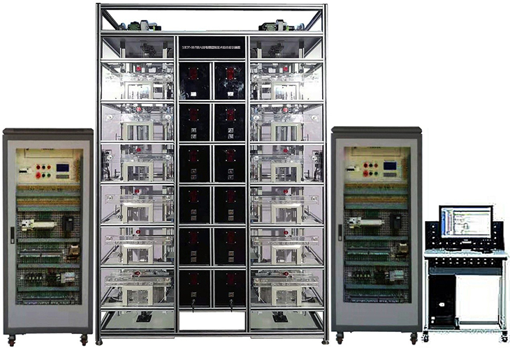電梯控制技術(shù)綜合實(shí)訓(xùn)裝置是專(zhuān)門(mén)為職業(yè)院校開(kāi)設(shè)的電氣自動(dòng)化、機(jī)電一體化、機(jī)械制造與自動(dòng)化等相關(guān)專(zhuān)業(yè)而研制的,裝置根據(jù)智能建筑中升降電梯的機(jī)構(gòu)按照一定的比例縮小設(shè)計(jì),所用設(shè)備、器件與實(shí)際電梯基本一致,采用槽鋼方管框架結(jié)構(gòu)整體設(shè)計(jì),正面使用透明有機(jī)玻璃面板,融低壓電氣、PLC、變頻調(diào)速、智能人機(jī)、傳感檢測(cè)、視頻監(jiān)控、智能考核系統(tǒng)等于一體,實(shí)現(xiàn)智能電梯復(fù)雜的開(kāi)關(guān)量控制、時(shí)序邏輯控制。通過(guò)該裝置的操作訓(xùn)練可考核學(xué)生掌握智能電梯的裝調(diào)與維護(hù)綜合能力,如電梯呼梯盒的安裝、井道信息系統(tǒng)的安裝、平層開(kāi)關(guān)檢測(cè)位置調(diào)整、門(mén)機(jī)機(jī)構(gòu)調(diào)整、電氣控制柜的器件安裝、接線、變頻器參數(shù)設(shè)置、PLC編程與調(diào)試、電梯群控功能調(diào)試、電梯故障排除、運(yùn)行維護(hù)等,除了滿足專(zhuān)業(yè)實(shí)訓(xùn)教學(xué),還能開(kāi)展技能考核以及職業(yè)技能競(jìng)賽。