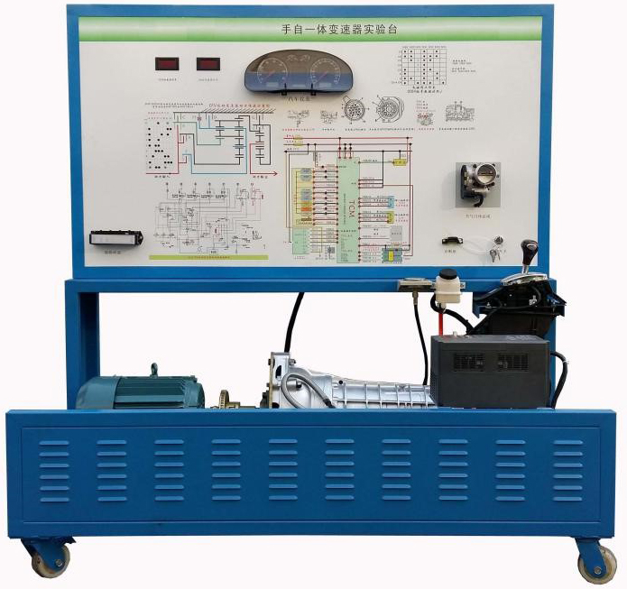 該設(shè)備采用 翻新 大眾帕薩特01V電控自動(dòng)變速器總成為基礎(chǔ),可調(diào)速三相異步電動(dòng)機(jī)做動(dòng)力源,對(duì)自動(dòng)變速器進(jìn)行檔位顯示、空檔起動(dòng)、前進(jìn)檔及倒檔運(yùn)行等工況實(shí)踐操作。真實(shí)展示電控自動(dòng)變速器組成結(jié)構(gòu)和工作過程。