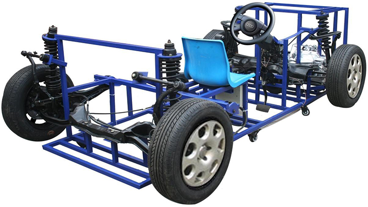 1.安裝真實(shí)的汽車(chē)底盤(pán)各系統(tǒng)(包含前后懸掛系、轉(zhuǎn)向系、傳動(dòng)系、手動(dòng)變速器及掛檔機(jī)構(gòu)、制動(dòng)系),充分展示汽車(chē)底盤(pán)各系統(tǒng)的組成結(jié)構(gòu)。