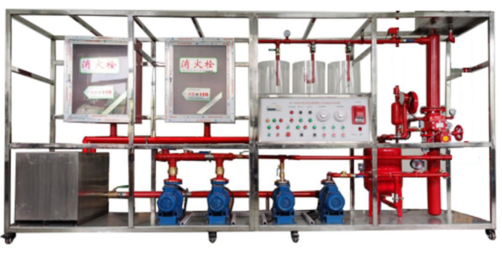 模型框架和水箱等主要部件全部使用不銹鋼器件,保證不生銹、不易老化,模擬大樓噴淋滅火系統(tǒng);模型系統(tǒng)主要由噴淋水泵、氣壓罐、濕式報(bào)警閥、水力警鈴、延時(shí)器、壓力開(kāi)關(guān)、水流指示器、封閉式噴頭、試驗(yàn)閥、火災(zāi)探測(cè)器、火災(zāi)報(bào)警器等典型噴水滅火設(shè)備構(gòu)成,能生動(dòng)模擬大樓內(nèi)水滅火系統(tǒng)的典型結(jié)構(gòu)。