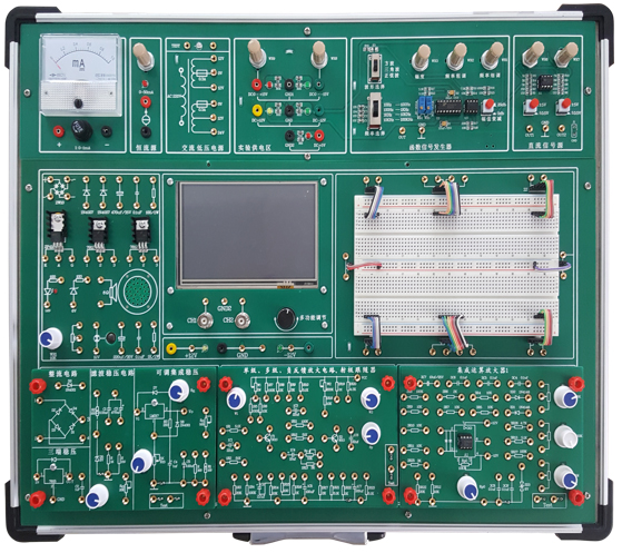 增強(qiáng)型電子線路綜合實(shí)驗(yàn)箱由全鋁木合金箱體、高性能線性電源和實(shí)驗(yàn)電路板等組成。其中實(shí)驗(yàn)電路既可以采用固定功能模塊方式,也可以自行搭建實(shí)驗(yàn)電路,電路原理和元器件符號(hào)清晰,實(shí)驗(yàn)用元器件全部焊裝在線路板的反面,而且有亞克力板保護(hù),安全可靠,不易損壞。本實(shí)驗(yàn)箱適用于本專院校所有電類和非電類專業(yè)《模擬電子技術(shù)》、《電子線路》等課程的實(shí)驗(yàn)教學(xué)。