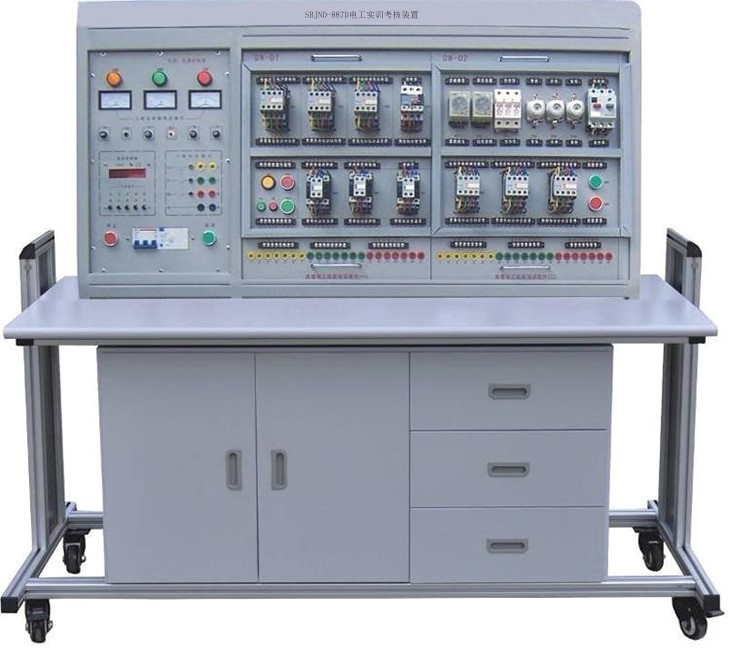 電工技能實(shí)訓(xùn)考核裝置是根據(jù)電工實(shí)訓(xùn)考核的實(shí)際情況而設(shè)計(jì)的集技能培訓(xùn)、培訓(xùn)考核鑒定于一體的多功能設(shè)備,以標(biāo)準(zhǔn)的配電柜為主柜,合理利用柜體的雙面空間.科學(xué)地布置各種低壓電氣設(shè)備。