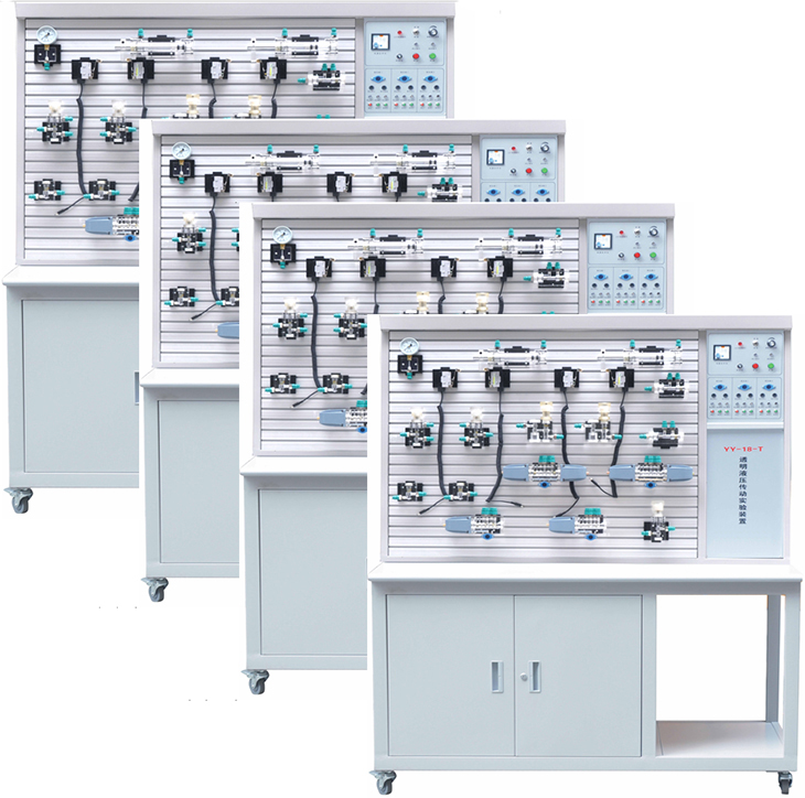 透明液壓實(shí)驗(yàn)臺為實(shí)現(xiàn)液壓傳動(dòng)課程現(xiàn)代化教學(xué)而進(jìn)行研究的最新科技成果,它填補(bǔ)了技校、中專、大專院校的液壓傳動(dòng)透明教學(xué)設(shè)備的國家空白。液壓傳動(dòng)具有重量輕、功率大、結(jié)構(gòu)簡單、布局靈活、控制方便等特點(diǎn)、速度、扭矩、功率均可作無級調(diào)節(jié),能迅速換向和變速,調(diào)速范圍寬,快速性好,工作平穩(wěn)、噪音小,元器件已實(shí)現(xiàn)系列化、標(biāo)準(zhǔn)化,通用化等一系列優(yōu)點(diǎn),隨著科學(xué)技術(shù)的發(fā)展,液壓傳動(dòng)作為一種可以傳遞動(dòng)力和控制的傳動(dòng)方式,已經(jīng)日益廣泛應(yīng)用到醫(yī)療、科技、軍事、工業(yè)自動(dòng)化生產(chǎn)、起動(dòng)、運(yùn)輸、礦山、建筑、航空等各個(gè)領(lǐng)域。為了適應(yīng)在短暫課堂時(shí)間內(nèi),完成多個(gè)液壓油路的教學(xué)內(nèi)容。同時(shí)對比演示多個(gè)不同油路的工作原理。而且,使油路系統(tǒng)的安裝調(diào)試有必要的程序且不占用上課教學(xué)時(shí)間。就必須有多臺設(shè)備同時(shí)工作。同時(shí),YY-18
